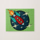 Retro Rocket illustration graphique de navire jigsaw puzzle. La couleur Arrière - plan peut être customisée.