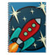 Rocket ship graphic illustration spiral notebook. Background colour can be customized.