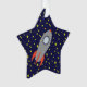 Retro Rocket Ship with Star Pattern Background Ornament