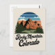 The Retro Rocky Mountain National Park Postcard captures the timeless beauty of the Rockies with a vintage design. Featuring bold colours and a nostalgic style, it’s the perfect way to share your love for this iconic park or to send a unique souvenir from your adventure in the mountains.