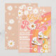 Celebrate in style with this retro roller skate birthday invitation featuring pastel rainbow colors, daisies, peace signs, and playful butterflies. Perfect for a groovy first birthday party, this vibrant design sets the tone for peace, love, and fun. With bold typography and charming roller skates, its an eye-catching way to invite friends and family to a special celebration. Customize with your party details and make your event unforgettable.