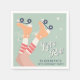 Cute sage green roller skating birthday party napkins featuring a retro-inspired illustration of pastel orange roller skates on a girl wearing red striped tube socks and "Let's Roll" in a 70's style script. Add her name dark teal blue typography.