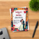This elegant comic book-style wedding acrylic invitation is perfect for a modern wedding. The retro design features a vintage bride and groom illustration and black calligraphy on a comic book-themed background.
