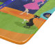 This Retro Romantic Evening Couple Cutting Board looks like a scene out of a 1960's romantic comedy. The minimalist design features an attractive cartoon couple in the living room of a mid century modern, urban apartment. The room prominently features a green, stone wall with a floor to ceiling window with a view. Through the window, we can see the blue silhouette of a big city skyline. A crescent moon is just visible in the orange sky of sunset. The furnishings in the room include a green, lounge chair with matching footstool, a yellow, sputnik light fixture, and a turquoise, cone shaped fireplace, complete with roaring fire. In the centre of the orange flooring, there is a round, green shag rug. A portable, turquoise and black record player is placed on the rug. Next to the record player, a vinyl record can be seen poking out of a kitschy album cover. Also on the rug, there is a sleek, black cat wearing a teal collar. This fancy feline is sitting in front of a martini glass. Enjoying this scene, we have a very sophisticated couple. There is a suave man wearing a blue suit, light blue shirt and red tie. The tall, dark and handsome man is enjoying the company of an elegant blonde woman. The lovely lady is wearing a hot pink dress with a form fitting bodice and flared skirt. They are each holding a crystal martini glass with a floating olive. Cheers! Here's to the perfect evening at home!