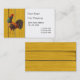 Custom business cards with a giant, colourful, crowing rooster restored from vintage kitchen crate artwork against a faux wood plank. Click Customize It to change fonts, sizing, card sizes, background colours front and back, even save your design for later.