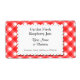 Motif de chèques et de bandes rétro rouge et blanc, sur des autocollants personnalisables dans des lettres rétro bloc et scrips, sur un faux doily. Customisez-le pour modifier les polices ou le dimensionnement, ajouter des champs ou modifier les couleurs arrière - plans ou la forme du étiquette, et même enregistrer votre conception pour plus tard.