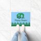 Retro RV Happy Camper and Trees in Green and Blue Doormat