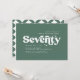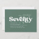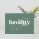 70th Birthday invite modern minimal simple retro mid century inspired sage green and white typography design.
