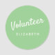 Retro sage green "Volunteer" magnetic name tag for volunteers, teachers, guides, event organizers for special events, such as weddings, craft fairs, home & garden shows, charitable events, business and corporate functions. Retro style, white script typography and white san serif font for the volunteer’s name.