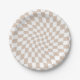 Retro Sand Rose Pink Pastel Warped Chequerboard Paper Plate