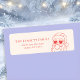 Retro Christmas return address label featuring a vintage Santa illustration with heart-shaped sunglasses and a pink bubble detail. Minimalist red line art design with playful festive charm.