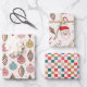 Retro Santa Chequered Happy Ornaments Wrapping Paper Sheet