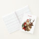 Spiral notebook with a fun Christmas illustration. Santa Claus in his traditional red suit riding a big antlered reindeer decorated with holly. A Christmas tree in the back.