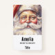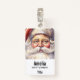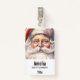 Name badge with a vintage style illustration. A portrait of Santa with his big white beard wearing his classic traditional red Santa hat.