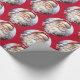 Wrapping paper with a vintage style illustration. A portrait of Santa with his big white beard wearing his classic traditional red Santa hat.