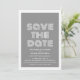 Retro Save the Date Announcement in grey and white with a funky modern typography design. This trendy and stylish save the date invite is easy to customize with your wedding details. For more customization options, click on the Customize It button.