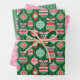 Retro Scandi Christmas Ornaments - Green Red Pink Wrapping Paper Sheet