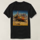 A digital rendering of a retro, vintage science fiction scene with a spaceship.