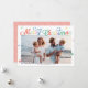 This retro inspired holiday photo card features a single horizontal photo over a classic white background and a multi-colored script greeting which says "Merry Christmas". This design accommodates a single horizontal photo on the front. The back of the card is a coordinating red and white diagonal stripe pattern, but can be removed if desired. You can further customize this design by adding another photo and/or additional text to the back.
