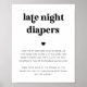 Encourage your guests to leave you a note or two with this elegant, stylish Late Night Diapers sign, featuring retro script and editable text. Easily customize the text if necessary by clicking on the "personalize" option.