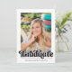 Celebrate the graduate with this groovy graduation announcement featuring your favourite photo with retro text image "Graduate", school name, graduation year and your name. Back features custom text and watercolor grad cap, flowers and diploma scroll.
