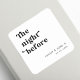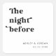 Add a playful vintage touch with this retro script square sticker for your The Night Before rehearsal dinner. Featuring bold typography with a nostalgic twist, it’s perfect for sealing envelopes, decorating favours, or adding charm to your pre-wedding celebration. Fully customizable with names or initials.