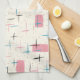 Vous serez rose chatouillé par cette rétro serviette de cuisine rose atomique de motif. Les caractéristiques de conception qu'un arrière - plan crème avec de l'or tachette, rectangles roses, et noir, turquoise, et barres obliques roses. Le motif est réminiscent du style moderne de la moitié du siècle traditionnelle. Vous êtes sûrs d'apprécier notre hommage aux années 1950. Achetez ceci aujourd'hui et soyez le chat le plus frais sur votre bloc.