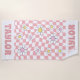 Multi Custom Color and Font Style - serviette de plage personnalisée avec nom, super, marguerites et rétro à damiers arrière - plan. Customisez toutes les couleurs comme vous le souhaitez ! Idée cool pour le cadeau Bridesmaid !