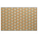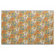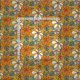 This 1960s and 70s retro fabric features a simple floral pattern in shades of orange, gold, white and green.
