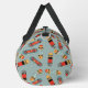 I actually had been searching other sites for a duffle gym bag and I couldn't find any. This one is just what I was looking for with all the features. The inside zip pocket, the outside mesh pocket and LOTS of room inside. Love the printing. Really like how the floral print turned out.