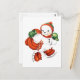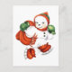 Cute little snowman wearing ice skates, mittens, hat and scarf. Retro card design in bright Christmas Colours