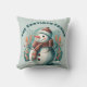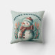 Customize this retro midcentury modern snowman pillow with your family's name or any other text. A perfect gift or home decor item for Christmas or other winter holidays. The adorable snowman is bundled up for snow and in front of a stylish snowy background.