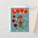 Retro sock monkey LOVE Postcard