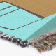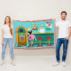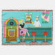 Serve up something special with this Retro Soda Fountain Throw Blanket. The minimalist art, cartoon drawing design features the interior of the coolest spot in town. It's a 1950's soda fountain, in all of its kitschy glory! Against the backdrop of an aqua wall, we can see posters advertising the specialties of the house. One poster shows a hamburger and bottle of pop for the bargain price of 15 cents. The other poster shows two scoops of ice cream in a sugar cone for a mere 5 cents. With prices like these, it must be difficult to watch your waistline! A most competent soda jerk is manning the teal counter with yellow accents. The young man with the strong work ethic is holding an ice cream cone with a single scoop of lemon yellow ice cream--although, to be fair, it could be pineapple! The clean-cut lad is wearing a pristine, white shirt with a black, bow tie and a white hat with red accents. On the opposite side of the counter, we see three red and chrome bar stools. Perched on one of the stools is a blonde teenybopper whose mouth is surely watering. It's unclear if her mouth is watering over the ice cream cone that is headed her way or the industrious young man who is serving it. She is wearing a pink poodle skirt and a form fitting black top. Her yellow locks are pulled back in a classic ponytail. Next to this cutie of a customer there is a colourful, classic jukebox, which features brown, wood grain, panelling and colourful neon lights. Better than that, it is sure to feature all of the greatest rock and roll hits of the time! The floor of this mid century modern ice cream parlour is an aqua and teal, chequerboard pattern that is just screaming for someone to try all of the latest dance moves.