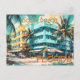 A radiant Florida postcard, capturing the essence of Miami's South Beach, with its sun-soaked retro Art Deco buildings, and swaying palm trees. This Florida postcard is part of a series of postcards created in a post-impressionism art style and is inspired by different locations around the world.