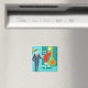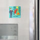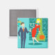 Chérie, je suis à la maison ! Ce Retro Space Age Cartoon Couple Magnet vous fera sentir envieux du couple de dessins animés sur un aimant! L'aménagement est composé d'un arrière - plan turquoise en briques turquoises et d'une cheminée à cônes vert olive. Il y a une horloge murale turquoise, starburst et une lampe pendentif à deux étages dans les tons jaune, bleu et noir. A l'avant et au centre, un homme d'affaires distingué, martini swilling, en costume bleu et cravate orange. À son côté, la bombe blonde d'une femme trophée porte une robe de torse rouge et tient un plateau de martinis. Va-va-va-voom !