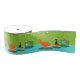It is said that dogs have owners and cats have staff. The feline on this Retro Space Age Kitty Grosgrain Ribbon couldn't agree more! The 1960's style, minimalist art design features a sleek, black cat in a mid century modern living room. The sophisticated room prominently features a green, stone wall. The carpet is aqua with teal shadows. The furnishings of the room include a yellow, sputnik light figure, an orange lounge chair with matching footstool and a green television with rabbit ears. The lucky black cat can be seen perched on the footstool in front of the television. Its favourite show is on! On the television screen, we can see a black and white, classic television family solving all of life's problems in a half hour show. This design is purrrfect, if we do say so ourselves.