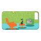 It is said that dogs have owners and cats have staff. The feline on this Retro Space Age Kitty iPhone 6 Case couldn't agree more! The 1960's style, minimalist art design features a sleek, black cat in a mid century modern living room. The sophisticated room prominently features a green, stone wall. The carpet is aqua with teal shadows. The furnishings of the room include a yellow, sputnik light figure, an orange lounge chair with matching footstool and a green television with rabbit ears. The lucky black cat can be seen perched on the footstool in front of the television. Its favourite show is on! the television screen, we can see a black and white, classic television family solving all of life's problems in a half hour show. This design is purrrfect, if we do say so ourselves.
