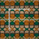 A retro inspired fabric print with an abstract pattern of Spiro-graph circles in tones of green, teal, muted orange and neutral taupe beige. Stylish available in various fabric styles and lengths to suit all your craft and sewing project needs.