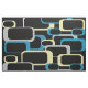 Retro Squares Pattern Blue Grey Yellow Black Fabric