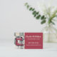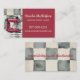 Baker, bakery, pastry chef business cards featuring a watercolor style retro red stand mixer against a checked pattern kitchen backsplash and diamond countertop.