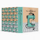 Retro mint stand mixer with faux aged background on this recipe organizer or personal cookbook for collecting your family favourite recipes, wedding gifting, or sharing recipes with family and friends.