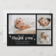 Simple and retro birth announcement card featuring a photo collage with a retro font text that says "thank you" with stars around. The background colour is black.