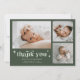 Simple and retro birth announcement card featuring a photo collage with a retro font text that says "thank you" with stars around. The background colour is forest green.