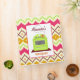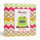 A binder featuring a background design of pink, green, burgundy, orange, and gold tribal inspired zigzag design. Front features an illustration of a bright green stove with an orange pot on the front burner. Personalize with your name.