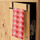 A kitchen towel with a retro pattern of red strawberries and white strawberry flowers on a pink background. Click Customize It to add your name or message, change background colours and more, even save your design for later.