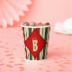Custom-made paper cups with cool retro style graphics personalized with your monogram are perfect for your Christmas parties and family get-togethers. A 1950's inspired pattern in warm, trendy colours of aurora red, ivy green, and cream. Substantial discount when bought in bulk quantities.