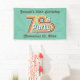 70's Party Banner featuring a retro style typography of "70's Party''. Designs include seventies inspired elements of blue, orange, mustard yellow, dark red and brown, stripes, and vintage texture. Includes a template to personally customize with event and date.