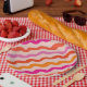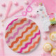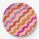 Retro Striped Abstract Waves Pink Red Orange Paper Plate