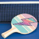 This eye-catching ping pong paddle features a bold lightning bolt filled with a groovy, retro-style sunset stripe pattern. The design combines a powerful symbol with a soft, vintage colour palette.